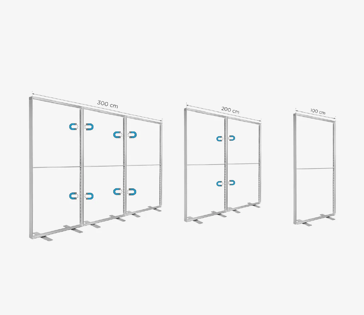 Double-sided LED aluminium frame / display wall sized 100×200 cm. Lightweight, quick to assemble and easy to transport – the perfect mobile LED lightbox for trade shows, events and sales presentations.