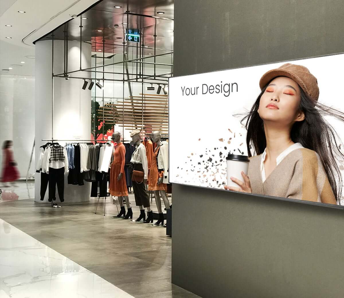 The ZEN Backlight 100 – 100 × 250 cm is a large aluminium LED lightbox with a textile graphic. Perfect for eye-catching wall displays in stores, showrooms and office spaces. The 10 cm depth and edge LED lighting deliver even, premium backlighting.