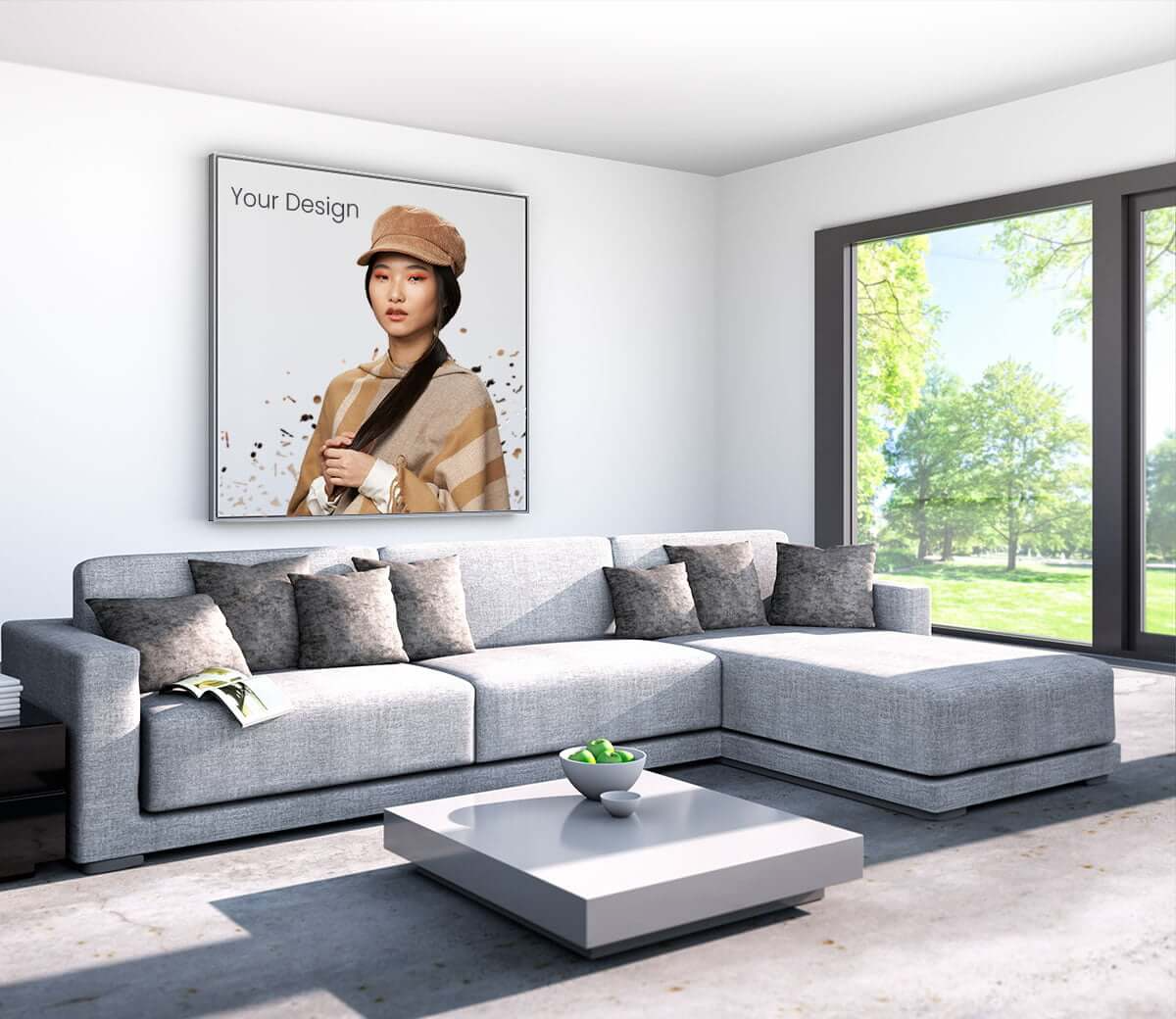 The ZEN Basic – 300 × 200 cm aluminum frame is a modern, lightweight solution for presenting textile graphics in offices, shops and exhibition spaces. The slim 2 cm-deep profile delivers a clean look and low overall weight, making installation easy even for large formats.