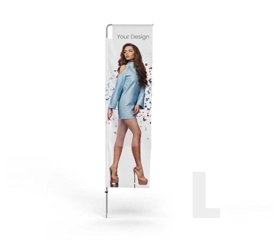 The Premium Square L Beachflag is an excellent solution for companies looking to make their brand stand out at trade shows, outdoor events, and in urban spaces. Measuring 400 cm in height with a large rectangular graphic area of 92 x 345 cm, the flag guarantees maximum visibility from a distance. High-quality sublimation print on 115 g/m² polyester ensures vivid colours and resistance to outdoor conditions, while the solid mast construction allows for quick assembly and convenient transport.