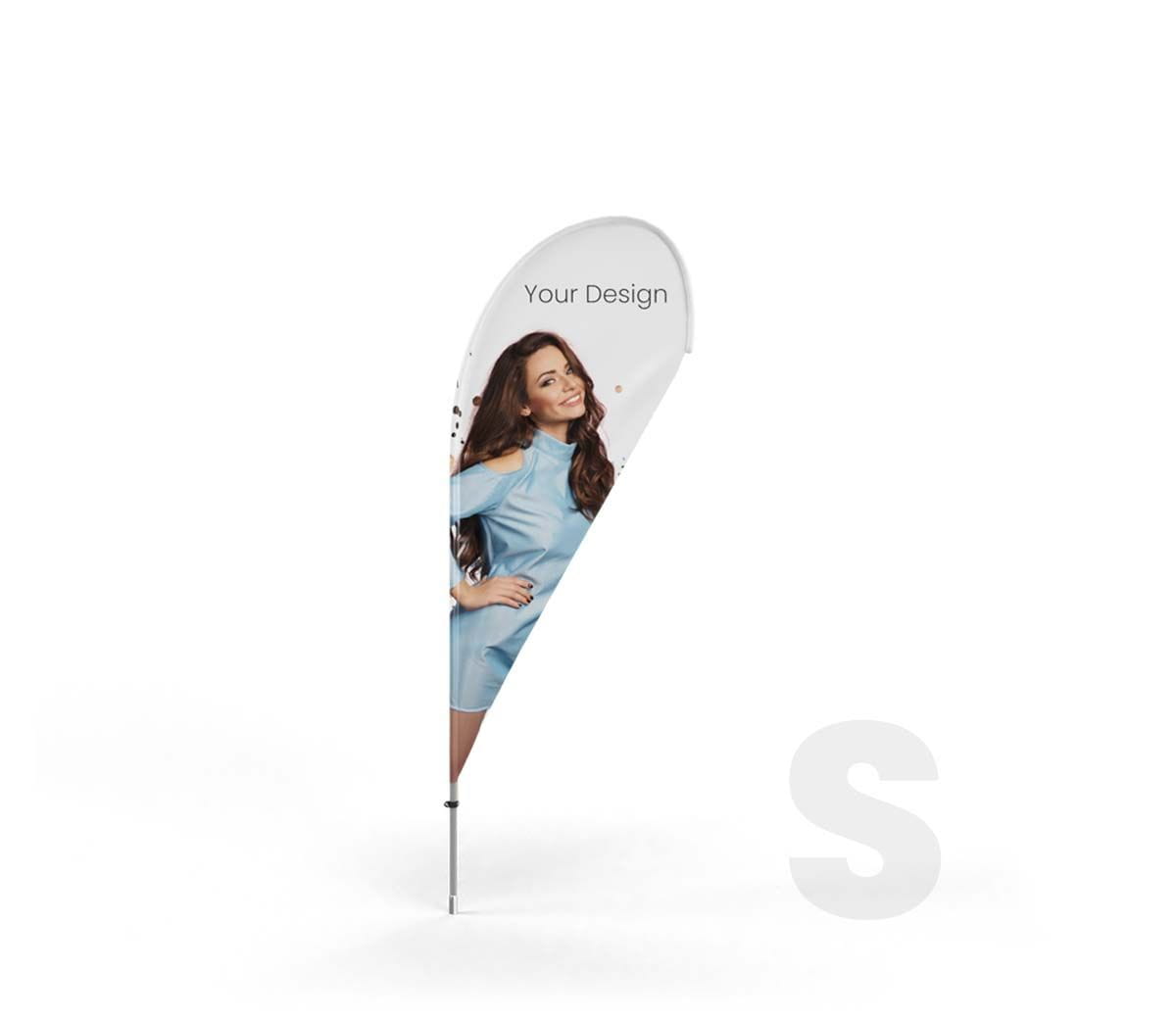 Compact, lightweight advertising flag ideal for events, trade shows, festivals, and storefront promotions. Single-sided sublimation print on durable 115 g/m² polyester ensures vibrant colours and weather resistance.