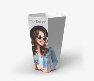 The bin can be fully personalized with UV printing in a semi-matte finish, showcasing logos, campaign graphics, or promotional copy without additional varnishing. It’s an attractive, effective in-store marketing tool.