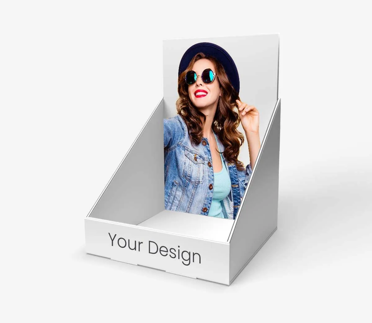 The cardboard display box is a compact, lightweight and functional advertising medium made of eco-friendly E-flute corrugated cardboard. Thanks to UV printing technology (semi-matt finish), it serves as an aesthetic and practical element for any sales area. Ideal for use in retail outlets, trade fairs, pharmacies, offices and waiting rooms.