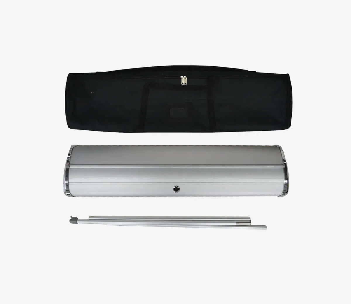 Premium construction — the heavier, extra-stable aluminium cassette and a robust three-piece mast carry the graphic securely, even in busy environments. The reinforced transport bag makes carrying easier and protects the set in transit.
