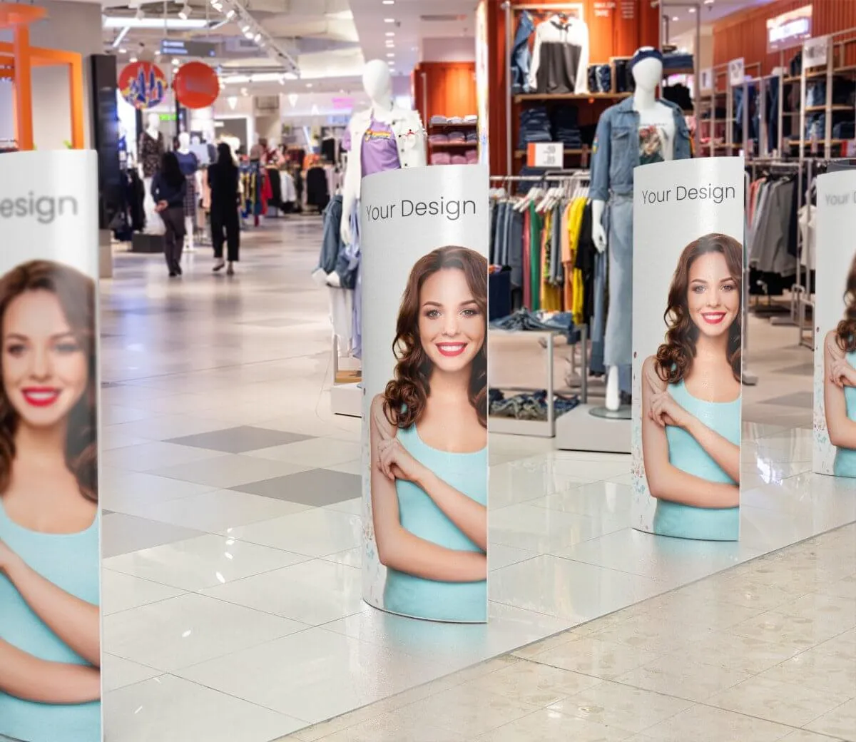 The enlarged 40 × 180 cm overlay turns standard EAS anti-theft gates into an even more prominent advertising surface. Made from durable GC1 solid board and finished with UV printing, it delivers vivid colours, a professional look and long service life in high-traffic entry/exit zones.